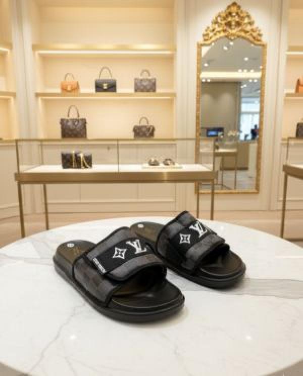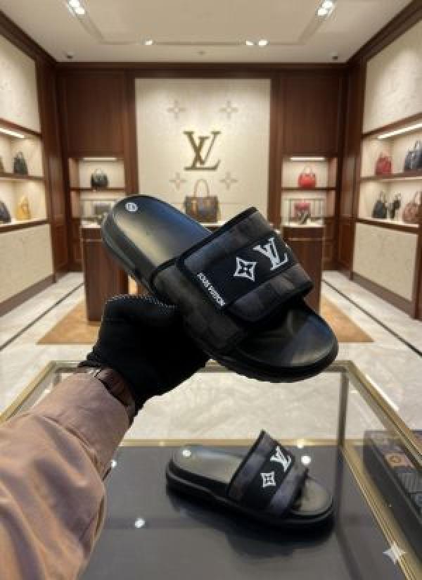 Louis-Vuitton-Black Premium Quality Mens Flip-flops